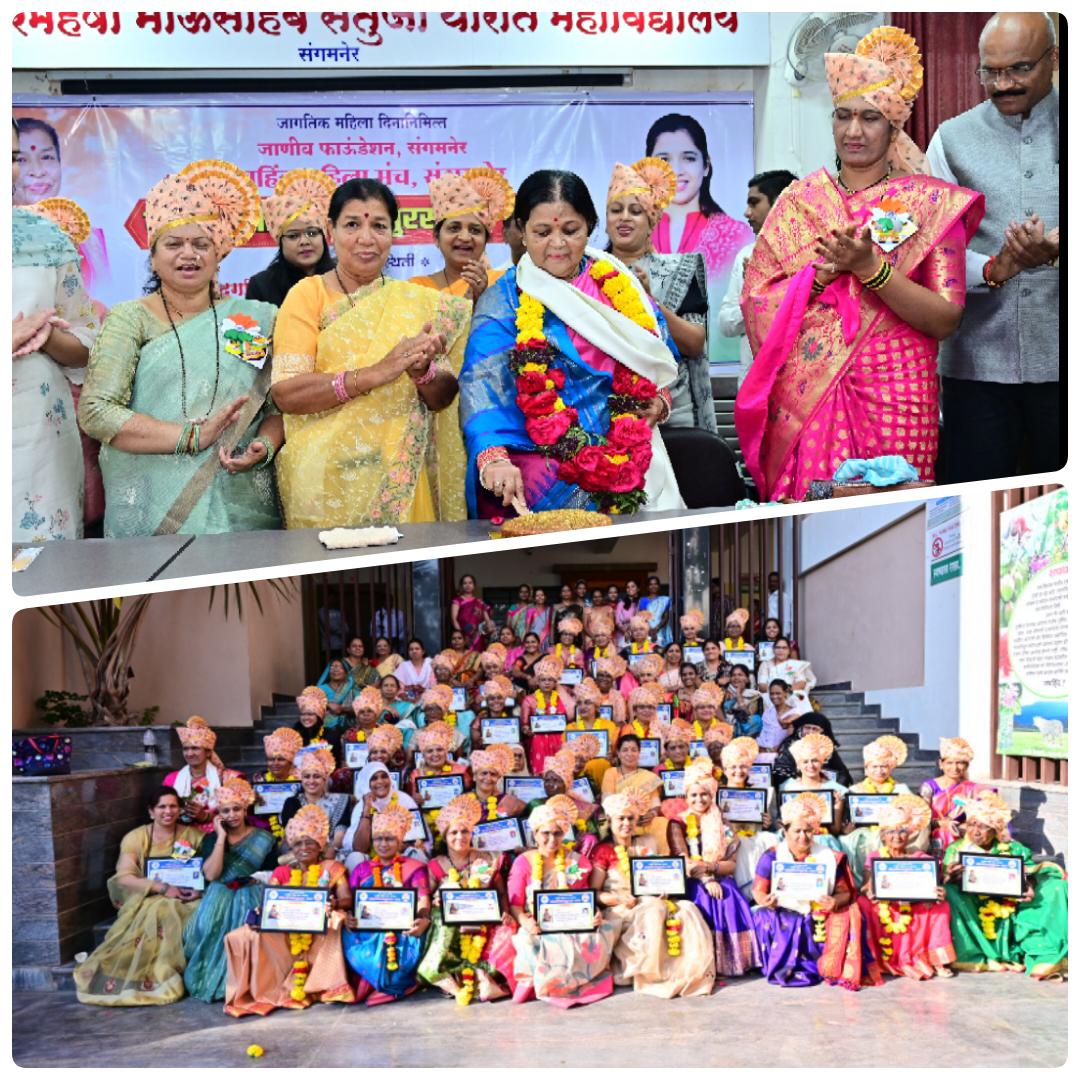 सौ ताराबाई वामन, वर्षा भोंडे, योगिता कडव ,सुप्रिया गायकर ,सौ लताताई मुर्तडक, जुलेखा शेख ,सौ संगीता बाळासाहेब देशमाने, सौ ताराबाई अशोक हजारे ,सौ प्रमिला रमेश खेमनर ,सौ शारदा गोरख करपे, सौ कविता सूर्यवंशी पवार, ऋतुजा मानकर, सिंधू गायकवाड, कमल काकडे ,ज्योती दारोळे ,नाजनीम शेख, जमुना राक्षे, अनारबाई कन्हैयालाल कतारी, रेखा पंजाबी, मंदा पाटोळे, सौदामिनी कानोरे, नूर जहा तांबोळी,सौ प्रमिला रामनाथ अभंग ,कल्पना देवेंद्र ओहरा, छाया दिघे, राणीताई वाजे, आशा वाकचौरे, ॲड शुभांगी घुले, डॉ अर्चना गोरे, उषा क्षीरसागर, सुशीला पाटणकर, शुभदा मुळे, सुजाता सांगळे, सोनाली गायकवाड ,वैशाली आडेप ,सुनिता पापडेजा ,निर्मला टोकसे, स्मिता गुने, रूपाली तिवारी, फातिमा मोमीन, सीमा चौबे, आसावरी मुळे, शोभा कोळपकर, जयश्री काळंग, चंद्रकला भोईर, जागृती कळसकर, रजनी पाथरकर, सुरेखा दुधे ,नम्रता नितीन ओझा, सुनीता वावळ ,उज्वला कलंत्री, राधाबाई गोसावी, पार्वतीबाई पवार, अशालता पारख, योगिता शिंदे, संगीता खरात, शीला वाकचौरे, पार्वतीबाई होलम या साठ महिलांना सन्मानचिन्ह शाल बुके व प्रशस्तीपत्र देऊन गौरविण्यात आले