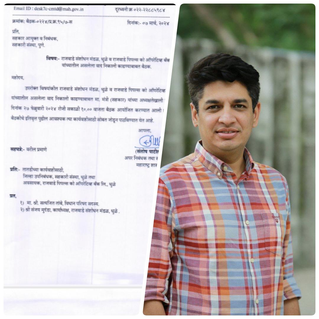 धुळ्यातील राजवाडे इतिहास संशोधन मंडळ ही एक ऐतिहासिक वारसा लाभलेली संस्था आहे. गेल्या ९७ वर्षांपासून ही संस्था कार्यरत आहे. संशोधन, ऐतिहासिक ग्रंथ व कागदपत्रांचे जतन अशा प्रकारची महत्त्वाची कामे या संस्थेच्या माध्यमातून होत असतात. परंतु, काही वर्षांपासून राजवाडे इतिहास संशोधन मंडळ व राजवाडे पिपल्स को. ऑपरेटिव्ह बँक लि. यांच्यात जमिनीचा वाद सुरू होता. आमदार सत्यजीत तांबे यांनी प्रश्न हाती घेऊन सहकारमंत्री दिलीप वळसे-पाटील यांच्यासोबत बैठक लावून तसेच पाठपुरावा सुरू होता. आता सहकारमंत्र्यांनी बँकेला एका महिन्यात जागा खाली करून ती राजवाडे इतिहास संशोधन मंडळाकडे सुपूर्द करण्याचे निर्देश दिले आहेत.