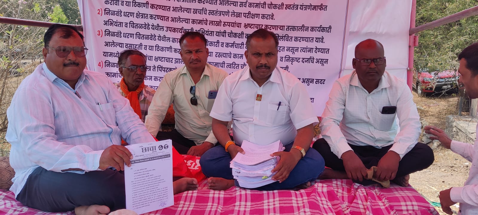 निळवंडे धरण क्षेत्रात झालेल्या कामांमध्ये मोठ्या प्रमाणात भ्रष्टाचार झाला असून या कामांची चौकशी पूर्ण होईपर्यंत संबंधित ठेकेदाराला कुठल्याही प्रकारचे बिले अदा करु नये. अदा केलेली बिले त्वरित वसुल करावी. दोषी ठेकेदाराला काळ्या यादीत टाकावे अशा विविध मागण्यासाठी राष्ट्रीय छावा संघटना महाराष्ट्र यांच्यावतीने संगमनेर येथील जलसंपदा कार्यालयाच्या गेट समोर सोमवार दिनांक १८ मार्च २०२४ पासून आमरण उपोषणास सुरुवात करण्यात आली आहे.