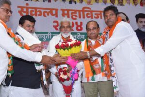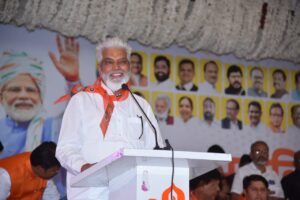 शिंदे – फडणवीस – पवार यांच्या नेतृत्वाखाली काम करताना अनेक योजना राबविल्या ५ लाखाचा विमा आरोग्यासह विविध योजना होय विरोधक भाषणे सांगतात की संविधान , लोकशाही धोक्यात आली आहे संविधान , लोकशाही धोक्यात नसून त्यांचे अस्तित्वचं धोक्यात आले आहे . कॉग्रेसच्या बड्या नेत्यालाचं एक ही जागा मिळाली नसल्याने मोठी मोठी खेदाची बाब आहे तर पवारांनी शेतकऱ्यांना पाणी न मिळवून देण्याचे पाप केले .