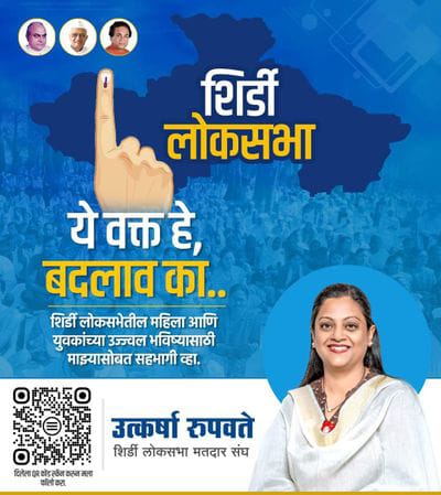 उत्कर्षा रुपवते या काँग्रेसच्या युवा नेत्या आहेत त्यांना राजकीय सामाजिक व शैक्षणिक पार्श्वभूमी आहे . महिला आयोगाच्या त्या सदस्य ही आहे आपल्या कामातून त्यांनी संपूर्ण राज्यात वेगळी छाप निर्माण केली आहे. आगामी लोकसभा निवडणुकीत काँग्रेस पक्षांकडून त्यांना उमेदवारी दिली जाईल अशी खात्री अनेकांना होती मात्र शिर्डीची लोकसभा ची जागा आपल्या कोट्यात घेण्यासाठी काँग्रेसचे नेते असमर्थ ठरले . यामुळे उत्कर्ष रुपवते यांना संधी मिळालेली नाही. शिर्डी लोकसभा मतदारसंघातून निवडणूक लढविण्यासाठी उत्कर्षा रूपवते इच्छुक आहेत. त्यांनी काही दिवसांपूर्वी वंचित आघाडीचे प्रमुख बाळासाहेब आंबेडकर यांची मुंबई येथे भेट घेतली. यानंतर रुपवते त्यांच्या नावाची जोरदार चर्चा सुरू झाली. शिर्डी लोकसभा मतदारसंघांमध्ये बौद्ध दलित मुस्लिम मराठा मतदारांची संख्या लक्षणीय आहे. रुपवते यांनी निवडणूक लढवल्यास त्यांना मतदारांचा मोठा प्रतिसाद मिळणार आहे.