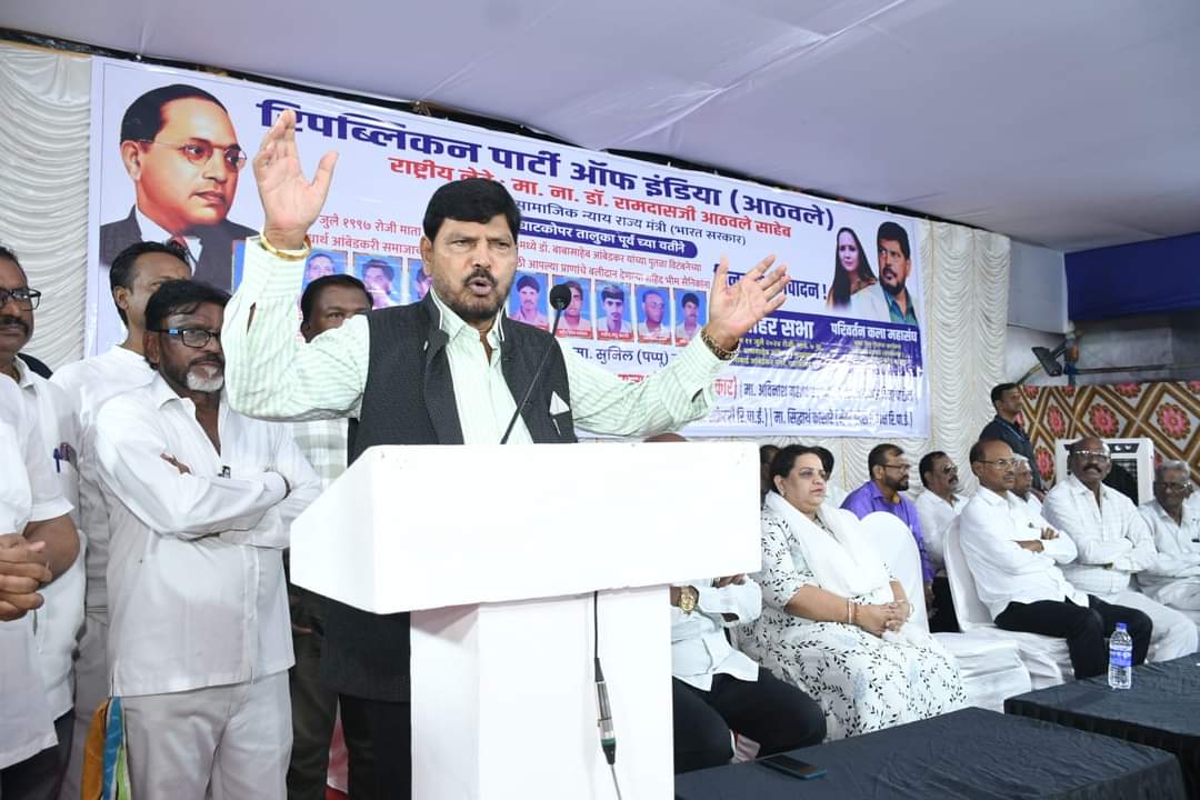 माता रमाबाई आंबेडकर नगर येथे शहिदांच्या 27 व्या स्मृतीदिनी आयोजित जाहिर अभिवादन सभेत ना.रामदास आठवले बोलत होते.