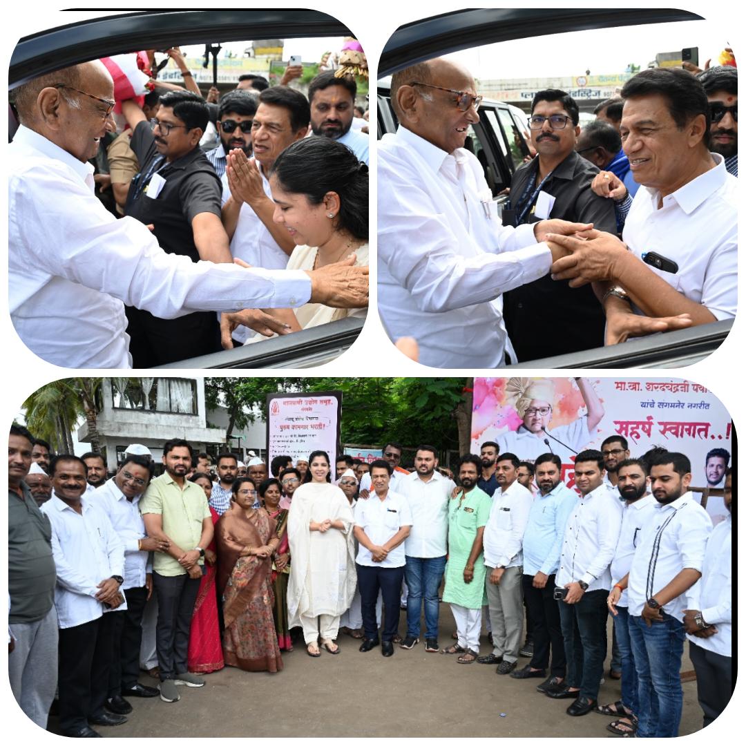खासदार शरदचंद्र पवार यांचे रस्त्यावर विविध ठिकाणी मोठ्या अबूतपूर्व जल्लोषात स्वागत करण्यात आले. अकोले नाका येथे आगमन होताच तरुणांनी प्रचंड जल्लोष केला .यावेळी फटाक्याची आतिषबाजी आणि ढोल ताशांचा गजर झाला.