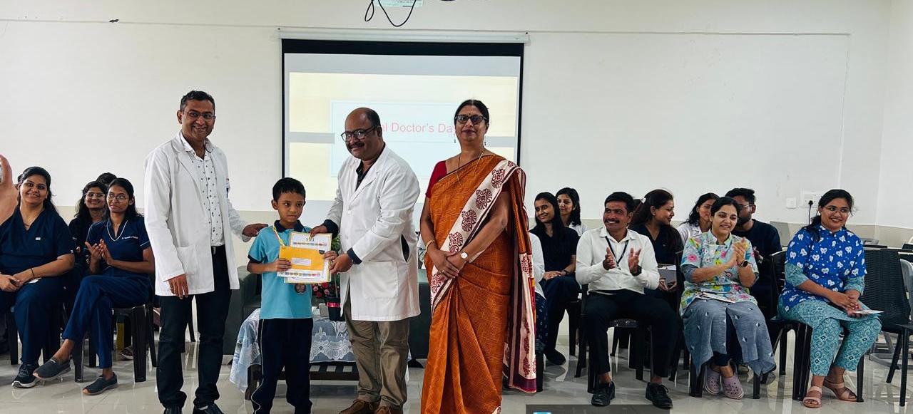 ‘डॉक्टर्स डे’ निमित्त एस एम बी टी डेंटल कॉलेज, संगमनेरच्या डेंटिस्ट टीमने, डॉ. विनया कुलकर्णी, डॉ. किशोर पाटील तसेच अमृतवाहिनी संस्थेच्या विश्वस्त सौ.शरयू देशमुख, स्कूलच्या संचालिका सौ. अंजली कन्नावार यांनी राजवीरच्या अतुलनीय कामगिरीबद्दल कौतुक करून भावी आयुष्यासाठी खूप खूप शुभेच्छा दिल्या.