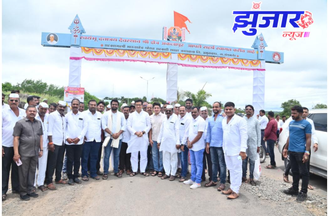 यावेळी बोलताना आमदार थोरात म्हणाले की, श्री क्षेत्र दत्त देवस्थान अकलापूर हे पठारभागासह तालुक्याचे श्रद्धास्थान आहे. वर्षभर भाविकांची मोठी वर्दळ या ठिकाणी असते. आलेल्या भाविकांची चांगली सोय व्हावी याकरता सातत्याने या देवस्थान करता मोठा निधी उपलब्ध करून दिले असून सुशोभीकरणाचे कामही होत आहे. निसर्ग संपन्न असलेल्या या परिसरात थोरात कारखान्याच्या वतीने भाविकांच्या स्वागताकरता भव्य स्वागत कमानही उभारण्यात आली आहे.