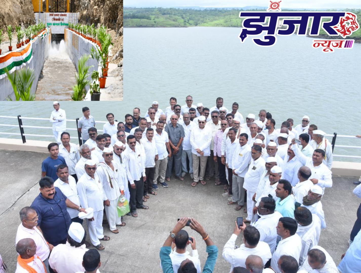 निळवंडे धरण स्थळावर पालकमंत्री राधाकृष्ण विखे पाटील यांच्या उपस्थितीत जलपूजन करण्यात आले. यावेळी माजी आमदार वैभव पिचड, अगस्ति कारखान्याचे अध्यक्ष सीताराम गायकर, भाजप तालुकाध्यक्ष यशवंत आभाळे, अगस्ति कारखान्याचे माजी संचालक राजेंद्र डावरे, अमृतसागर दूध संघाचे संचालक जगन देशमुख, अगस्ति पतसंस्थेचे अध्यक्ष अशोक देशमुख, संगमनेर तालुका संजय गांधी निराधार योजनेचे अध्यक्ष अमोल खताळ यांच्यासह जलसंपदा विभागाचे अधीक्षक अभियंता बाळासाहेब शेटे, उपअभियंता श्री. चोपडे, अभिजीत देशमुख आणि लाभक्षेत्रातील शेतकरी उपस्थित होते.