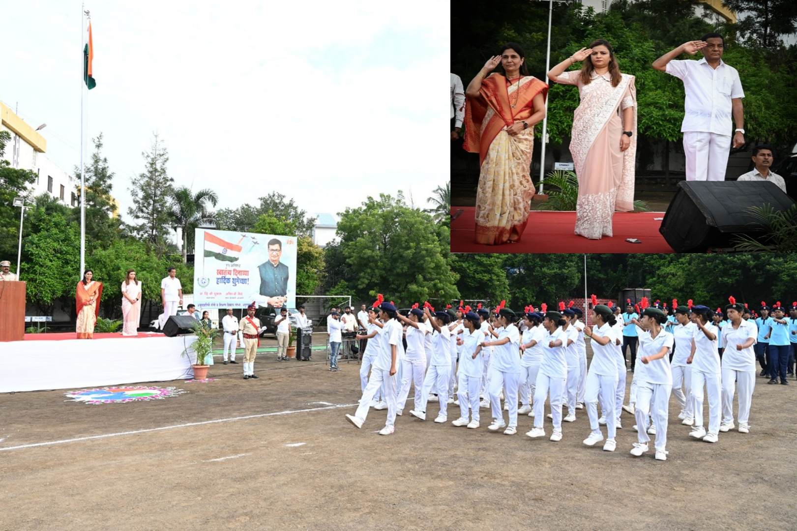 अमृतवाहिनी शेती व शिक्षण विकास संस्थेच्या वतीने मेधा मैदानावर 78 वा स्वातंत्र्य दिन मोठ्या उत्साहात साजरा झाला यावेळी त्या बोलत होत्या. यावेळी संस्थेच्या विश्वस्त सौ शरयूताई देशमुख, मुख्य कार्यकारी अधिकारी अनिल शिंदे, अकॅडमी डायरेक्टर डॉ. जे. बी. गुरव, प्राचार्य डॉ एम ए व्यंकटेश, व्यवस्थापक प्रा. व्ही.बी. धुमाळ, डॉ मच्छिंद्र चव्हाण, डॉ मनोज शिरभाते , डॉ. राजेंद्र वाघ, डॉ. बी एम लोंढे, सौ जे. बी. सेट्टी, शितल गायकवाड अंजली कन्नावार, विलास भाटे, प्रा.जी.बी. काळे, प्रा विजय वाघे ,नामदेव गायकवाड, प्रा. जी.बी. बाचकर, प्रा. बाळासाहेब शिंदे ,डॉ. सुनील सांगळे आधी सर्व विभाग प्रमुख शिक्षक उपस्थित होते.