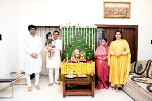 सुदर्शन निवासस्थानी श्री गणेशाची स्थापना झाल्यानंतर ते बोलत होते. श्रींची स्थापनावेळी मा. महसूल मंत्री आमदार बाळासाहेब थोरात, सौ कांचनताई थोरात, युवक काँग्रेसच्या अध्यक्षा कॅन्सरतज्ञ डॉ. जयश्रीताई थोरात, संशोधक व कॅन्सरतज्ञ प्रा. डॉ. हसमुख जैन आदी उपस्थित होते.
