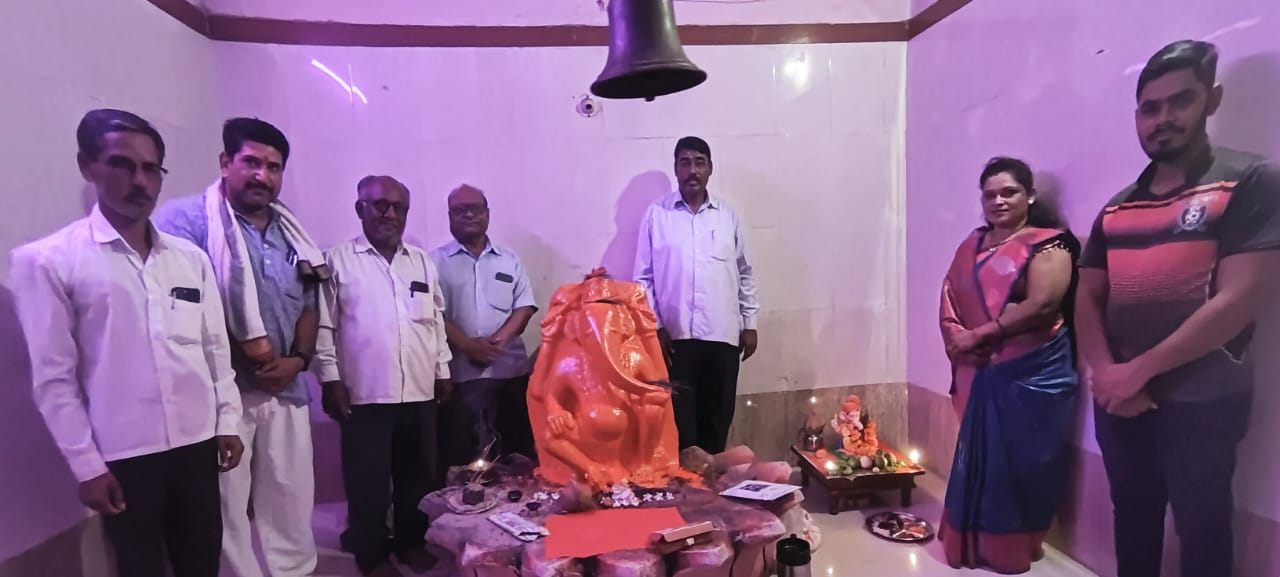 दरम्यान कला शिक्षक के. पी. तांबे यांनी शाडुच्या मातीची सुदंर गणेश मुर्ती तयार करत त्यावर नैसर्गिक रंग देत मनमोहक मुर्ती तयार केली. त्या मुर्तीची गणेश चतुर्थीनिमित्त मंदिरात विधिवत स्थापना करण्यात केली.