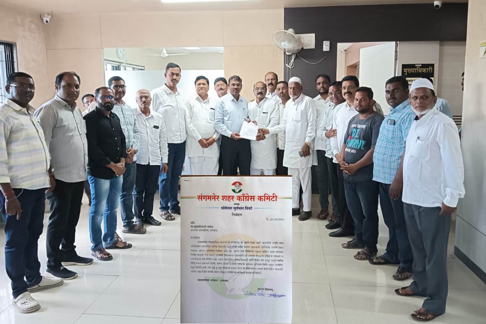 नगरपालिकेच्या मुख्यालयात मुख्याधिकारी रामदास कोकरे यांना शहर काँग्रेसने निवेदन दिले यावेळी शहराध्यक्ष सोमेश्वर दिवटे, मा. नगराध्यक्ष दिलीपराव पुंड, विश्वासराव मुर्तडक, नगरसेवक शैलेश कलंत्री, किशोर पवार, बाळासाहेब पवार, नूर मोहम्मद शेख, इसाहकखान पठाण, नितीन अभंग, संतोष मुर्तडक ,धनंजय डाके, अनुज अरगडे, राजेंद्र वाकचौरे, आसिफ खान, सुभाष दिघे, अंबादास आडेप , गणेश मादास आदींसह विविध पदाधिकारी कार्यकर्ते व माजी नगरसेवक उपस्थित होते.