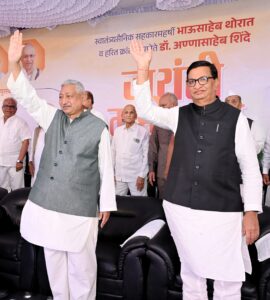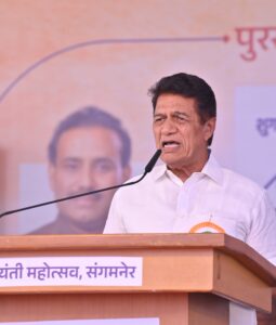 यशोधन जवळील मैदानात सहकार महर्षी भाऊसाहेब थोरात हरितक्रांतीचे प्रणेते डॉ अण्णासाहेब शिंदे यांच्या जयंती महोत्सवात आयोजित पुरस्कार वितरण सोहळ्यात ते बोलत होते. यावेळी अध्यक्षस्थानी माजी मंत्री बाळासाहेब थोरात हे होते .तर व्यासपीठावर माजी विरोधी पक्षनेते आमदार विजय वडेट्टीवार, खासदार भाऊसाहेब वाकचौरे, आमदार सत्यजित तांबे, आमदार हेमंत ओगले ,माजी आमदार मोहन दादा जोशी ,ज्येष्ठ पत्रकार मधुकर भावे, सौ कांचनताई थोरात, सौ दुर्गाताई तांबे ,रणजीत सिंह देशमुख, डॉ.जयश्रीताई थोरात, बाजीराव पाटील खेमनर, माधवराव कानवडे, बाबा ओहोळ, सौ प्रभावती ताई घोगरे ,दशरथ सावंत , मधुकरराव नवले ,राजवर्धन थोरात आदी उपस्थित होते.
