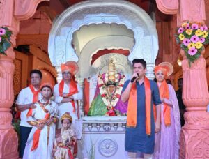 अत्यंत उत्कृष्ट सजावट, विद्युत रोशनाई, मैदानी खेळ, आतिश बाजी आणि भगवे वातावरण यामुळे सजलेल्या संगमनेर बस स्थानक परिसरात अलोट गर्दीत व मोठ्या जल्लोषपूर्ण वातावरणात छत्रपती शिवाजी महाराजांच्या भव्य मंदिराचा देखावा लोकनेते बाळासाहेब थोरात व आमदार तांबे यांच्या उपस्थितीत खुला करण्यात आला. यावेळी समाजातील सर्व घटकांना बरोबर घेऊन आदर्श राज्य व समाज निर्माण करण्याचे