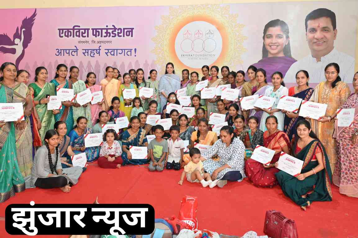 यावेळी डॉ. जयश्रीताई थोरात म्हणाल्या की, ग्रामीण व शहरी भागातील महिलांमध्ये अनेक कलागुण असून त्यांना योग्य मार्गदर्शन मिळावे यासाठी एकवीरा फाउंडेशन तर्फे प्रशिक्षणाची संधी उपलब्ध करून दिली आहे. लोकनेते बाळासाहेब थोरात यांच्या मार्गदर्शनाखाली तालुक्यात महिला बचत गटांची मोठी जाळे निर्माण झाली असून त्यांना विविध योजनांचा लाभ मिळवून दिला जात आहे. युवती व महिलांना स्वयंरोजगार मेळावा याकरता एकविराच्या माध्यमातून जुलै 2024 मध्ये सुरू करण्यात आलेल्या या शिवण क्लास कोर्समध्ये 760 महिलांना कोर्स पूर्ण केले आहे. या प्रशिक्षणाचा लाभ या महिलांना चांगल्या पद्धतीने झाला असून त्याचा फायदा त्यांच्या कुटुंबासाठी आर्थिक उत्पन्न मिळवण्यासाठी होत आहे.