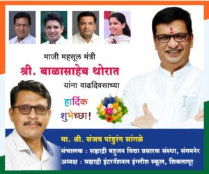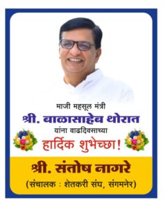 संगमनेर तालुका व शहर प्रगतशील बनवणाऱ्या या विकासाच्या महानायक असलेल्या नेतृत्वाला वाढदिवसानिमित्त कोटी कोटी शुभेच्छा …