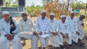 भर उन्हात तरुण आणि वृद्ध शेतकऱ्यांची ही मोठी उपस्थिती