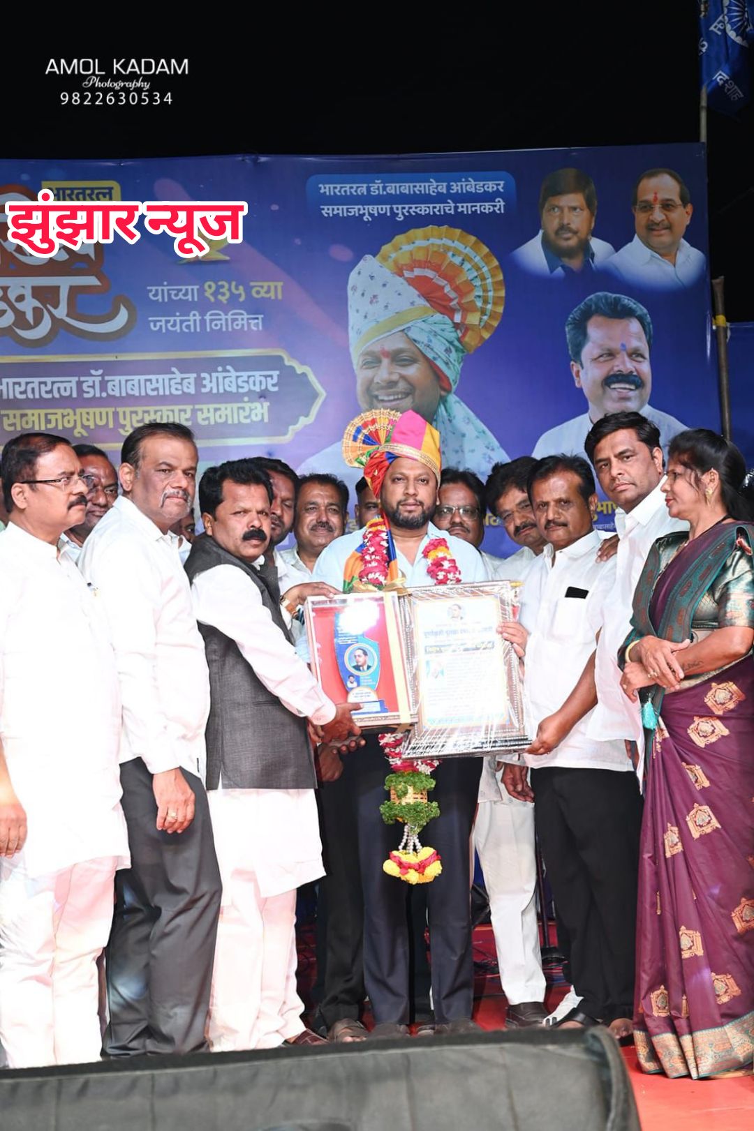 भारतीय जनता पक्षाचे प्रदेश उपाध्यक्ष डॉ. सुजय विखे पाटील यांना भारतरत्न डॉ. बाबासाहेब आंबेडकर पूर्णआकृती पुतळा स्मारक समितीच्या वतीने ‘समाज भूषण पुरस्कार’ देऊन गौरविण्यात आले. यावेळी विविध मान्यवरांच्या उपस्थितीत हा सोहळा मोठ्या उत्साहात संपन्न झाला. या कार्यक्रमात बोलताना डॉ. विखे पाटील यांनी श्रीरामपूरकरांना एक महत्त्वाची ग्वाही दिली – “येत्या ३ महिन्यात डॉ. बाबासाहेब आंबेडकरांचा भव्य पूर्णआकृती पुतळा उभा करू,” असा शब्द त्यांनी यावेळी दिला.