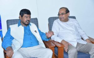आठवले – विखे पाटील या उभयाताच्या सह्याद्री कक्षातील १५ मिनिट्याच्या भेटीमध्ये तपशिल समजला नाही मात्र चेहर्‍यांवरांच्या हावभावात पुन्हा एकदा शिर्डीतून निवडणुक लढविणार असल्याच्या वक्तव्याला हिरवा कंदिल असल्याचे दिसून आले यावेळी विश्रामगृह व परिसरात जत्राचे स्वरुप दिसून आले