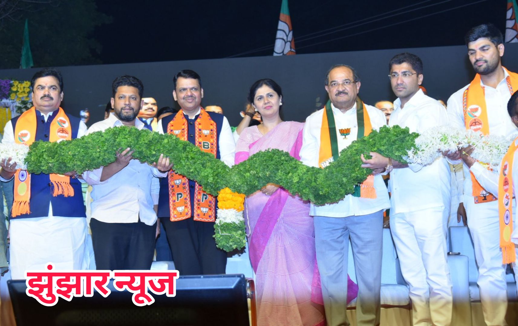 यावेळी व्यासपीठावर विधान परिषदेचे सभापती राम शिंदे, ग्रामविकास मंत्री पंकजा मुंडे, महसूल मंत्री तथा पालकमंत्री राधाकृष्ण विखे पाटील, माजी खासदार सुजय विखे पाटील, आमदार संग्राम जगताप, मोनिका राजळे, अमोल खताळ, काशिनाथ दाते सर, विक्रम पाचपुते, विठ्ठल लंघे, प्रसाद लाड, स्नेहलता कोल्हे, डॉ. बाबुराव तनपुरे कारखान्याचे अध्यक्ष अरुण तनपुरे, ज्येष्ठ नेते ॲड. सुभाष पाटील, अलकाताई कर्डिले, महापौर ज्योती गाडे, सुवर्णा कोतकर, जिल्हाध्यक्ष दिलीप भालसिंग यांच्यासह महायुतीचे अनेक पदाधिकारी व कार्यकर्ते मोठ्या संख्येने उपस्थित होते.