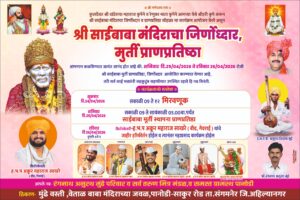 दुसऱ्या दिवशी, शनिवारी सकाळी ९ ते ५ या वेळेत विधीवत मंत्रोच्चारात श्री साईबाबांच्या मूर्तीची मंदिरात प्राणप्रतिष्ठा केली जाणार आहे. या धार्मिक विधीसाठी परिसरातील भाविक मोठ्या संख्येने उपस्थित राहणार आहेत. .