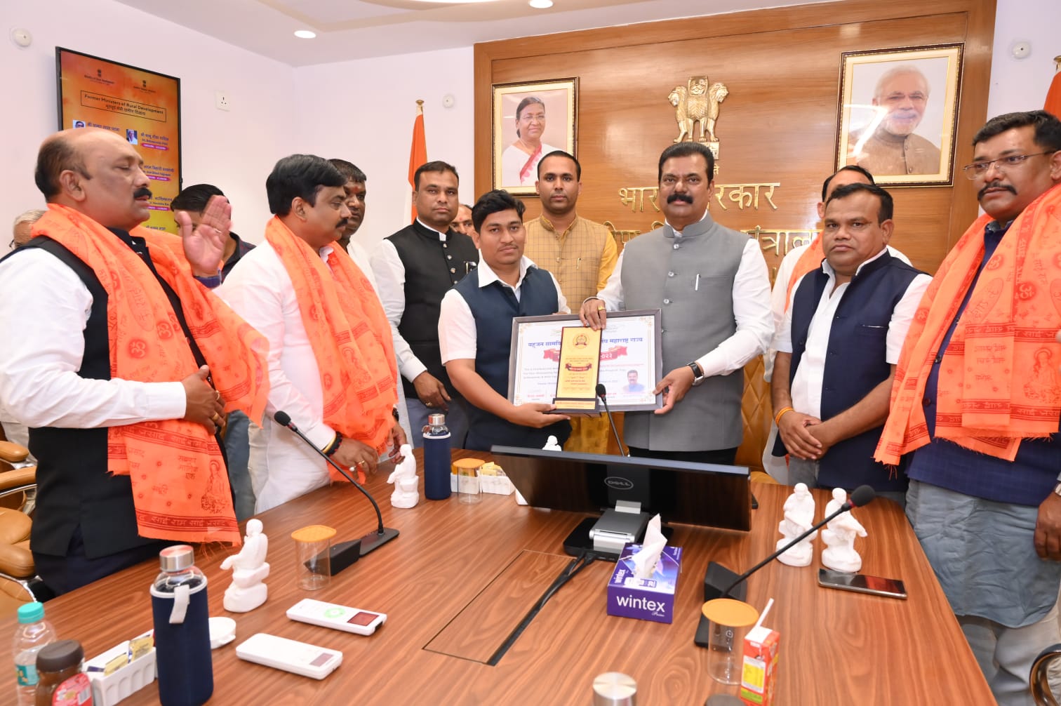 दिल्ली : झुंजार न्यूज दिल्ली येथील केंद्रीय पंचायत राजमंत्री कपिल पाटील यांच्या शुभहस्ते यंदाचा बहुजन ग्रामविकास सेवा असोसिएशन संघ महाराष्ट्र राज्याच्या वतीने दिला जाणारा राष्ट्रीय रत्न सन्मान 2023 पुरस्काराने अहदनगर जिल्ह्यातील संगमनेर तालुक्यातील काकडवाडी गावचे निर्भिड पत्रकार व जनसंवाद चॅनलचे संपादक पत्रकार दत्तात्रय घोलप यांचा भारत सरकारच्या दिल्ली येथील पंचायत राज मंत्रालय राष्ट्रीय रत्न सन्मान 2023 ने सन्मानित करण्यात आले आहे.