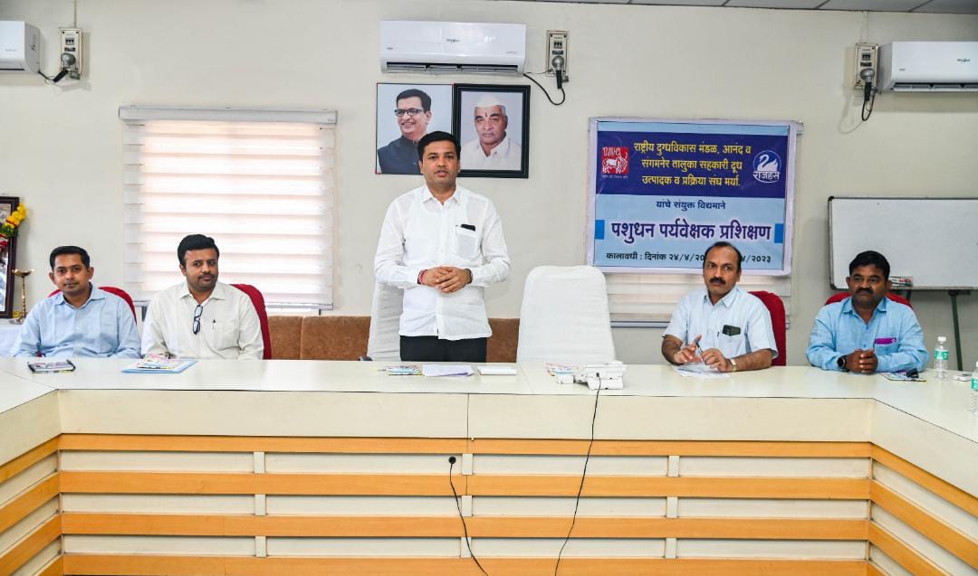 संगमनेर तालुका सहकारी दूध संघ राष्ट्रीय दुग्धविकास मंडळ व आनंद यांच्या संयुक्त विद्यमाने पशुधन पर्यवेक्षक प्रशिक्षण कार्यशाळेत ते बोलत होते. यावेळी समवेत राष्ट्रीय दुग्धविकास मंडळाचे राहुल नायर, डॉ शुभांकर नंदा, डॉ सागर श्राफ, सौ सीमा माथुर, डॉ सरोज वहाने ,दूध संघाचे कार्यकारी संचालक डॉ सुजित खिलारी आदींसह विविध पदाधिकारी उपस्थित होते..