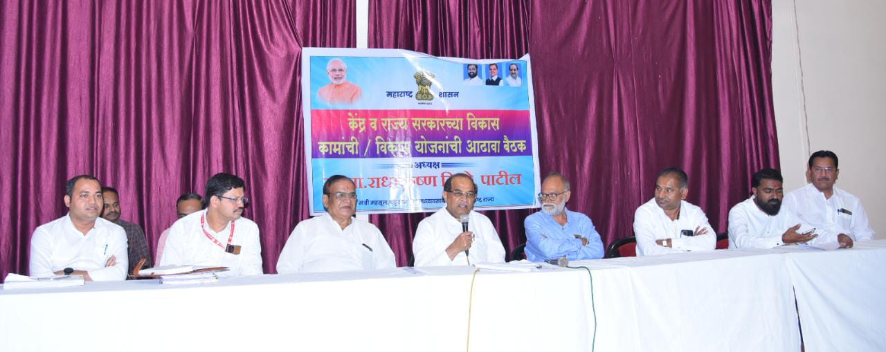 मंत्री ना.राधाकृष्ण विखे पाटील यांच्या उपस्थितीत तालुक्यातील जिल्हा परिषद गट निहाय बैठकांचे आयोजन होते. घुलेवाडी, संगमनेर खुर्द या जिल्हा परिषद गटातील गावांमध्ये सुरु असलेल्या शासकीय योजनांच्या कामांचा आढावाही घेण्यात आला. उपस्थित ग्रामस्थ आणि पदाधिका-यांनी केलेल्या विविध प्रश्नांबाबत गांभिर्याने दखल घेण्याची सुचना या बैठकीमध्ये मंत्र्यांनी दिल्या. प्रांताधिकारी शशिकांत मंगरुळे, गटविकास आधिकारी अनिल नागणे यांच्यासह सर्व शासकीय विभागाचे वरिष्ठ आधिकारी तसेच जेष्ठ नेते वसंतराव देशमुख, गुलाबराव सांगळे, भाजपाचे तालुका अध्यक्ष सतिष कानवडे, शहर अध्यक्ष श्रीराम गणपुले, माजी नगराध्यक्ष जावेद जहागिरदार, अमोल खताळ आदि पदाधिकारी याप्रसंगी उपस्थित होते.