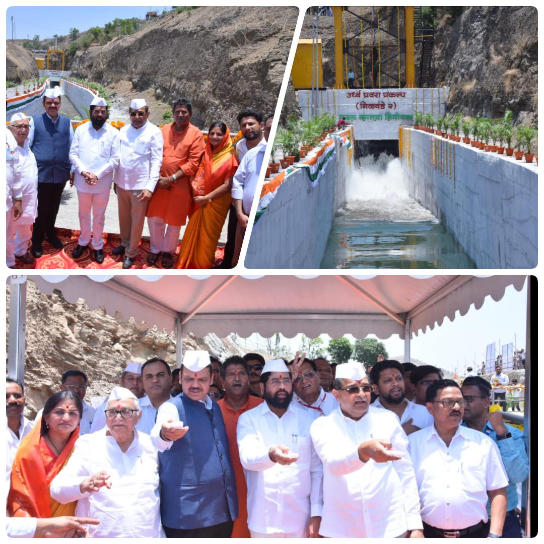 अहमदनगर व नाशिक जिल्ह्यातील दुष्काळी भागासाठी जीवनदायी ठरणाऱ्या निळवंडे धरणातून पाणी सोडण्याची प्रथम चाचणी मुख्यमंत्री एकनाथ शिंदे, उपमुख्यमंत्री देवेंद्र फडणवीस यांच्या हस्ते आज निब्रळ येथे पार पडली. कार्यक्रमाच्या प्रारंभी मुख्यमंत्री, उपमुख्यमंत्री यांच्या हस्ते जलपूजन करून निळवंडे धरणाच्या डाव्या कालव्यातून पाणी सोडण्याची चाचणी घेण्यात आली. यावेळी महसूल, पशुसंवर्धन, दूग्ध व्यवसाय विकासमंत्री तथा जिल्ह्याचे पालकमंत्री राधाकृष्ण विखे पाटील, खासदार सदाशिवराव लोखंडे, खासदार डॉ. सुजय विखे पाटील, जलसंपदा विभागाचे अतिरिक्त मुख्य सचिव दीपक कपूर, नाशिक विभागीय आयुक्त राधाकृष्ण गमे, जिल्हाधिकारी सिध्दाराम सालीमठ, जलसंपदा विभागाचे कार्यकारी अभियंता विजय भोगले, अधीक्षक अभियंता अरूण नाईक, जिल्हा बँकेचे अध्यक्ष शिवाजीराव कर्डिले, माजी मंत्री मधुकरराव पिचड, अण्णासाहेब म्हस्के पाटील, माजी आमदार स्नेहलता कोल्हे, वैभव पिचड आदी मान्यवर उपस्थित होते.
