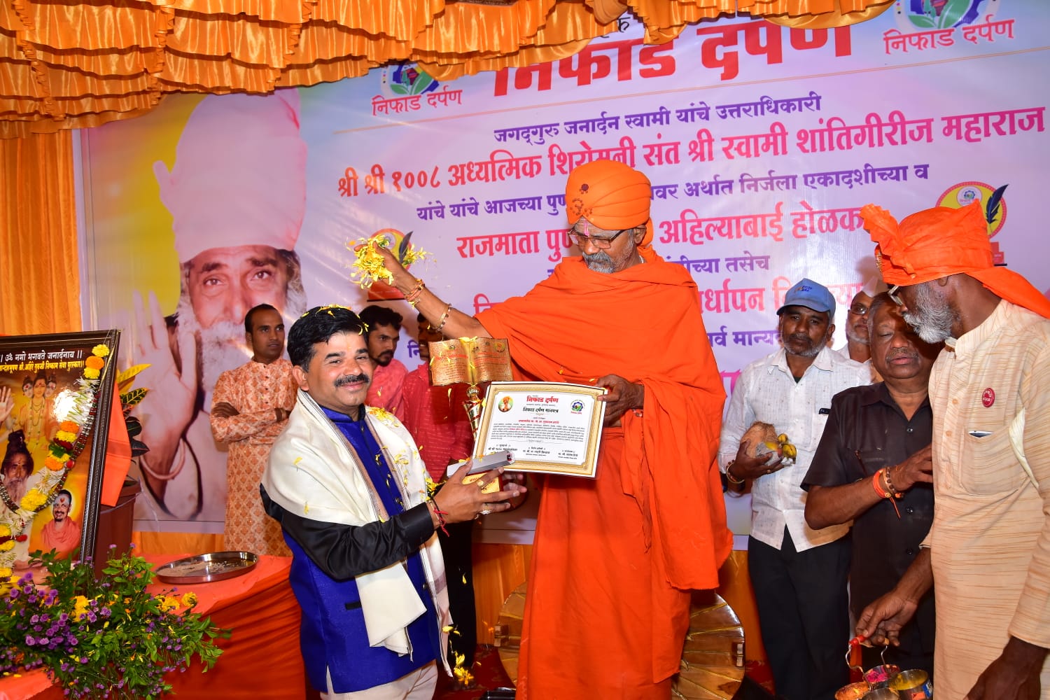 कोपरगांव तालुक्यातील श्रीक्षेत्र संवत्सर (रामवाडी) येथील रहिवासी व प्रा. तुकाराम लक्ष्मण डरांगे यांना संगित क्षेत्रातील योगदानाबददल श्री श्री श्री १००८ महामंडलेश्वर शांतीगिरी महाराज यांच्या हस्ते नुकताच निफाड दर्पण पुरस्कार प्रदान करण्यांत आला.