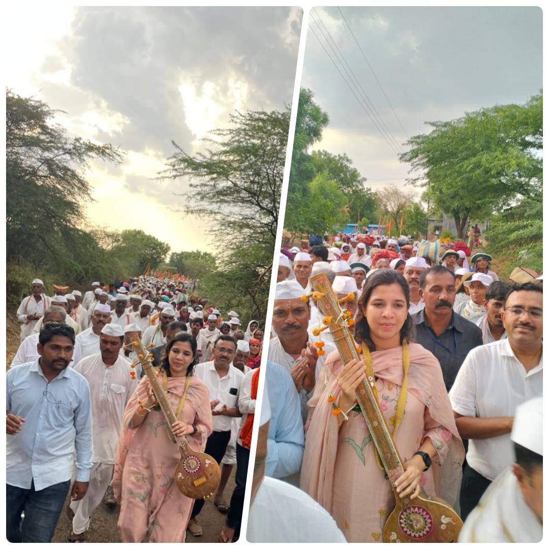 विविध वारकऱ्यांनी फुगडी खेळत डोक्यावर तुळशी वृंदावन घेत डॉक्टर जयश्रीताई थोरात यांच्या समवेत अभंग गायले हरिनामाचा गजर आणि भक्तीमय वातावरणाने सर्व परिसर दुमदुमून गेला होता