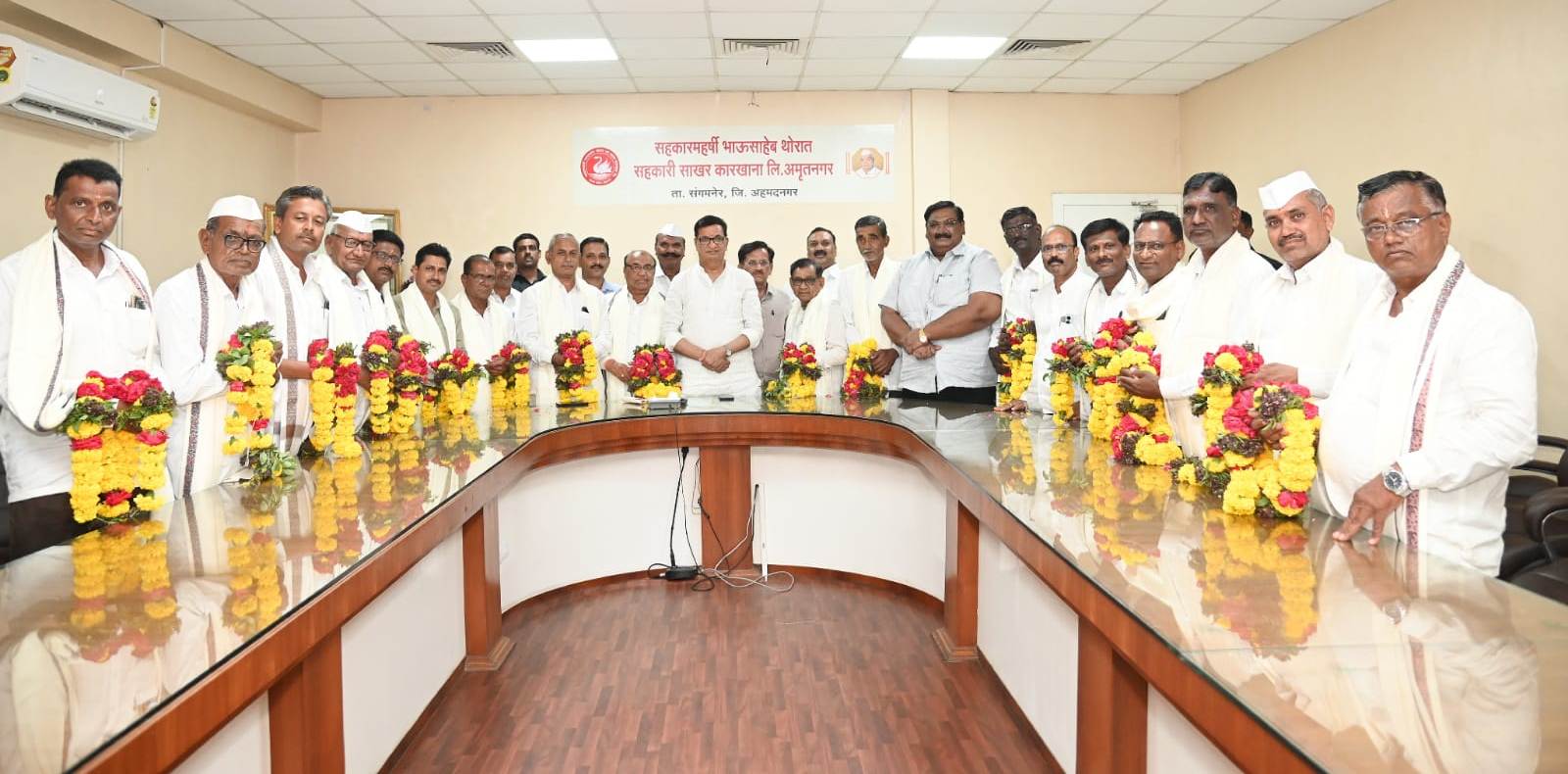यावेळी काँग्रेस पक्षाचे वरिष्ठ नेते आदरणीय आमदार बाळासाहेब थोरात व महाराष्ट्र राज्य सहकारी साखर संघाचे उपाध्यक्ष आणि कारखान्याचे चेअरमन बाबासाहेब ओहोळ, उपाध्यक्ष संतोष हासे,सुरेशराव थोरात, कार्यकारी संचालक जगन्नाथ घुगरकर व इतर पदाधिकाऱ्यांच्या उपस्थितीत श्री गणेश सहकारी साखर कारखान्याच्या नवनिर्वाचित संचालक मंडळाचा सत्कार करण्यात आला.