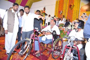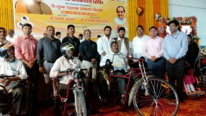 खासदार डॉ.सुजय विखे पाटील यांनी आपल्या भाषणात या योजनेच्या अंमलबजावणीची पार्श्वभूमी विषद करुन, यापुर्वी जेष्ठ नागरीकांसाठी वयोश्री आणि आता दिव्यांग व्यक्तिंसाठी पंतप्रधान नरेंद्र मोदी यांनी घेतलेली पालकत्वाची भूमिका अत्यंत महत्वाची आहे. आजपर्यंत समाजातील या घटकांचा कोणीही विचार केला नव्हता. जिल्ह्यातही या योजनेची अंमलबजावणी प्राधान्याने आपण केली. अनेकजण कित्येक वर्षे सत्तेत राहीले, परंतू दिव्यांगाची त्यांना आवठण झाली नाही.