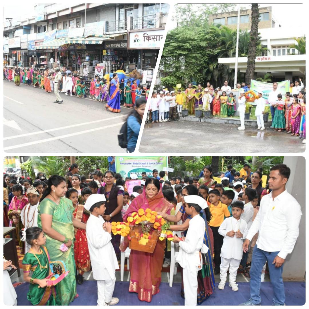 आषाढी वारी ही महाराष्ट्राची सांस्कृतिक परंपरा असून अमृतवाहिनी मॉडेल स्कूलच्या सुमारे 250 विद्यार्थ्यांनी विठ्ठल, रखुमाई ,संत तुकाराम ,ज्ञानेश्वर, चोखोबा अशा विविध वेशभूषा करून पर्यावरण संवर्धन व वृक्षारोपणाचा संदेश देत दिलेल्या घोषणांनी संगमनेर दुमदुमले