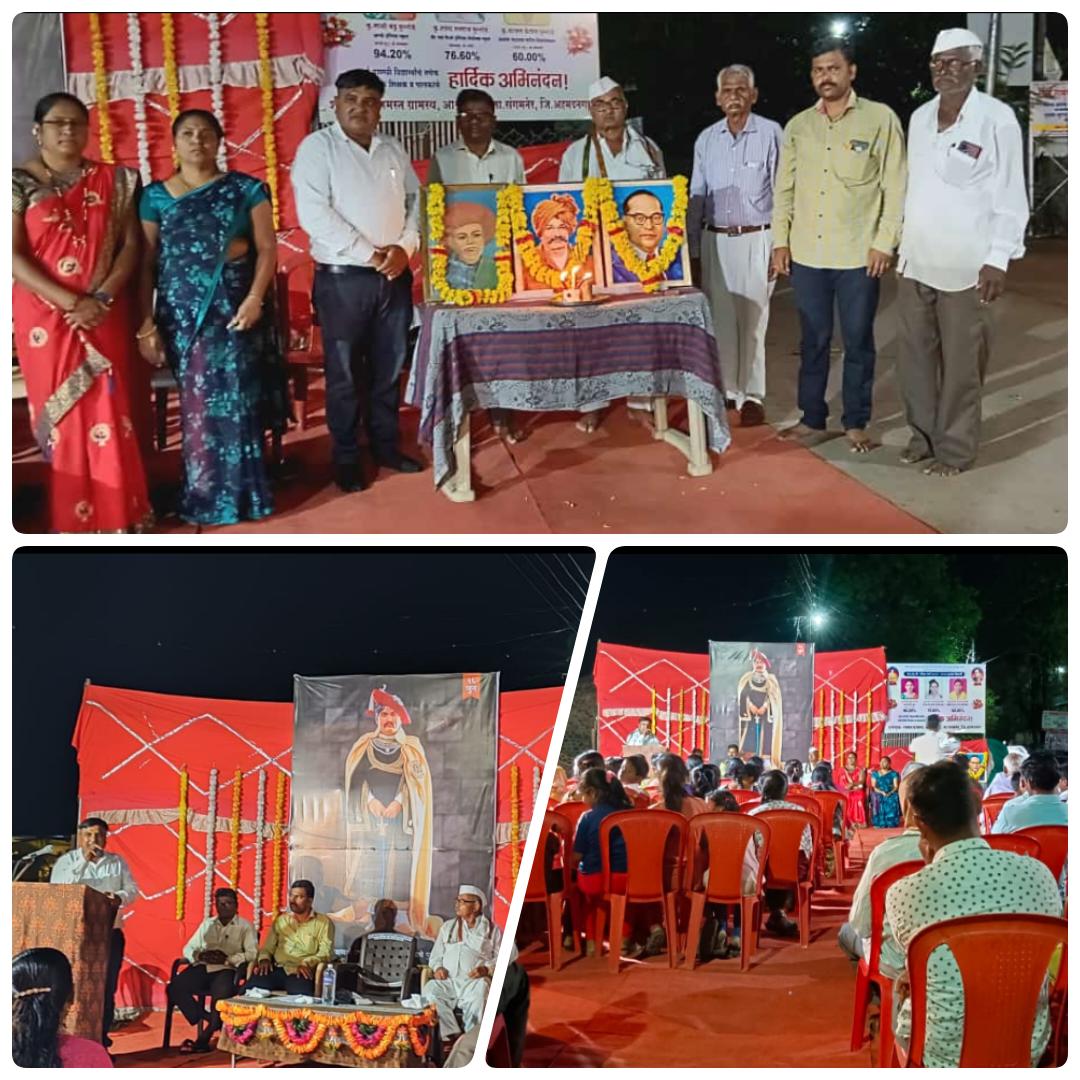 मुन्तोडे म्हणाले भारतीय संविधानाची लेटर आणि स्पिरीट अमलबजावणी सत्तर वर्षापेक्षा अधिक कालावधी लोटूनही उद्देशिकाच्या जवळपास पोहचण्यात आलेले अपयश झाकता येत नसताना कायद्यातील उणीवा ठळकपणे दिसून येतात. यावेळी मंचावर आदर्श पोलीस पोलीस पाटील राज्य पुरस्कार विजेते बापूसाहेब गायकवाड,मोहित गायकवाड, शीला संसारे,संगीता शिंदे,छ्बन मुन्तोडे व विकास भडकवाड उपस्थित होते. जागृतीचा अग्नी सतत तेवत ठेवण्यासाठी संयुक्त जयंती महोत्सव समितीचे प्रबोधन कार्य महापुरुषाचा केवळ जयजयकार करण्यापेक्षा त्यांचे अपूर्ण कार्य पूर्ण करण्यासाठी असल्याचे सचिव राजेंद्र मुन्तोडे प्रास्तविक भाषणात सांगितले. छत्रपती शिवाजी महाराज पुतळ्याला पुष्पहार अर्पण करून मंचावरील महात्मा फुले, राजर्षी शाहू महाराज,व महामानव डॉ. बाबासाहेब आंबेडकर यांच्या प्रतिमांना मान्यवरांनी पुष्पहार घालून प्रतिमापूजन केले.