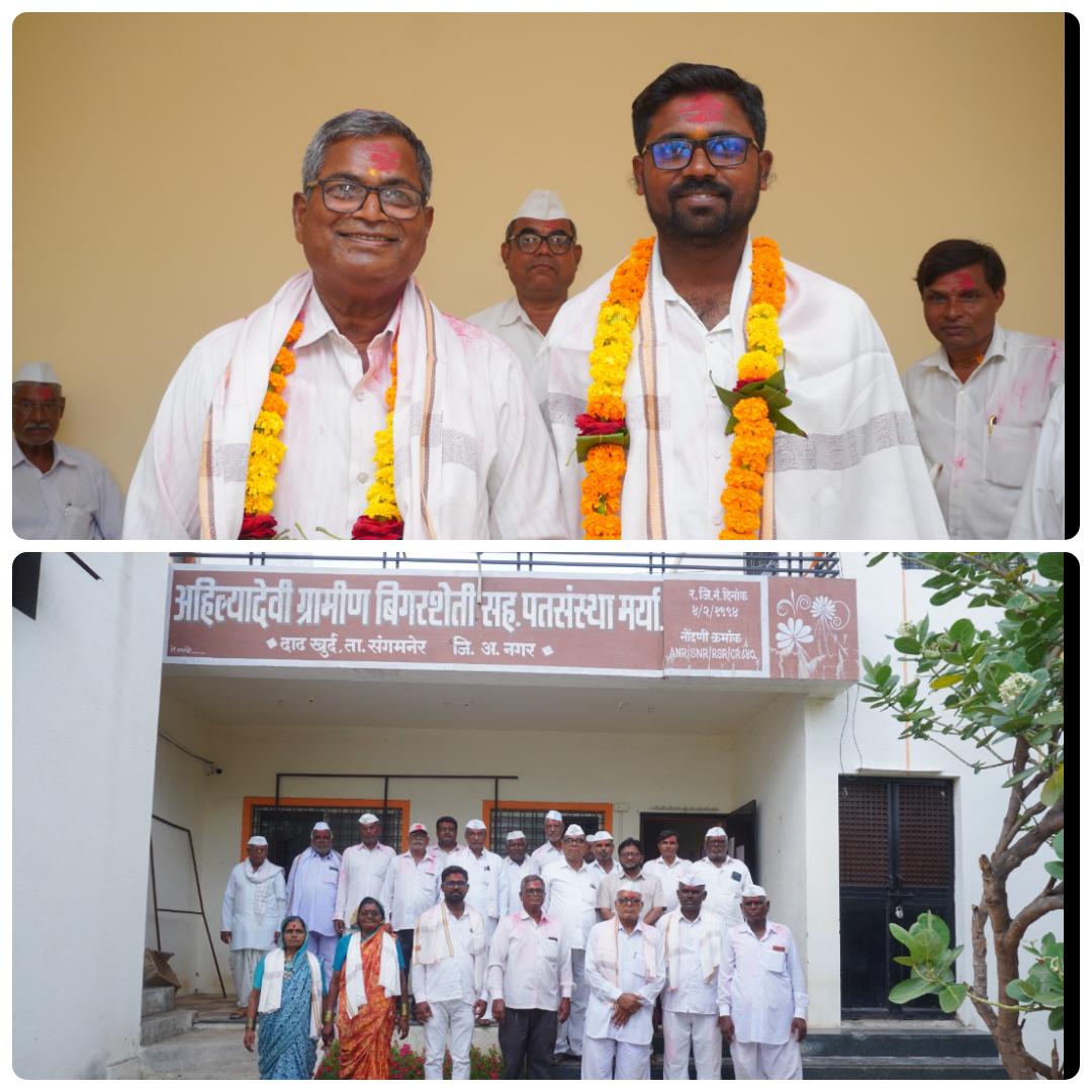 अहिल्यादेवी पतसंस्थेच्या संंचालक पदी नारायणराव कहार, भास्करराव जोरी, सिताराम साळवे, ज्ञानेश्वर वाडगे, बाबासाहेब पर्वत, अशोक जोशी, विकास जोशी, नानासाहेब जोशी,संपत बोर्हाडे,सौ.जनाबाई जोशी, पुनाबाई कहार यांची बिनविरोध निवड करण्यात आली.