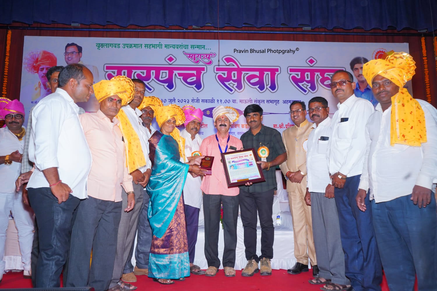 संगमनेर पचायत समितीचे माजी सदस्य सरुनाथ उंबरकर यांना सरपंच सेवा संघाचा मानाचा राज्यस्तरीय समाजभूषण पुरस्कार आदर्श संरपच भास्करराव पेरे पाटील व हवामान तज्ञ पंजाबराव डख यांचे हस्ते सत्कार करून सपत्नीक प्रदान करण्यात आला