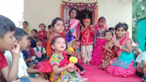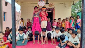 यावेळी सुदाम सांगळे , प्रियंका शिंदे , पल्लवी भूसाळ , सविता खैरे यांच्या मार्गदर्शनाखाली चिमुकल्यांना श्रीकृष्ण – राधिकासह बाळगोपिकांची वेशभूषा बालपनच्या चिमुकल्यांनी करत एक आनंदीमय वातावरणात मुलांच्या चेहर्यावर उत्साह दिसून आला .गोपाळा – गोपाळा गाण म्हणत श्रीकृष्ण मंदिरात उभारलेली दहीहंडी फोडून चिमूकल्यांनी गोकूळाष्टमी साजरी केली .