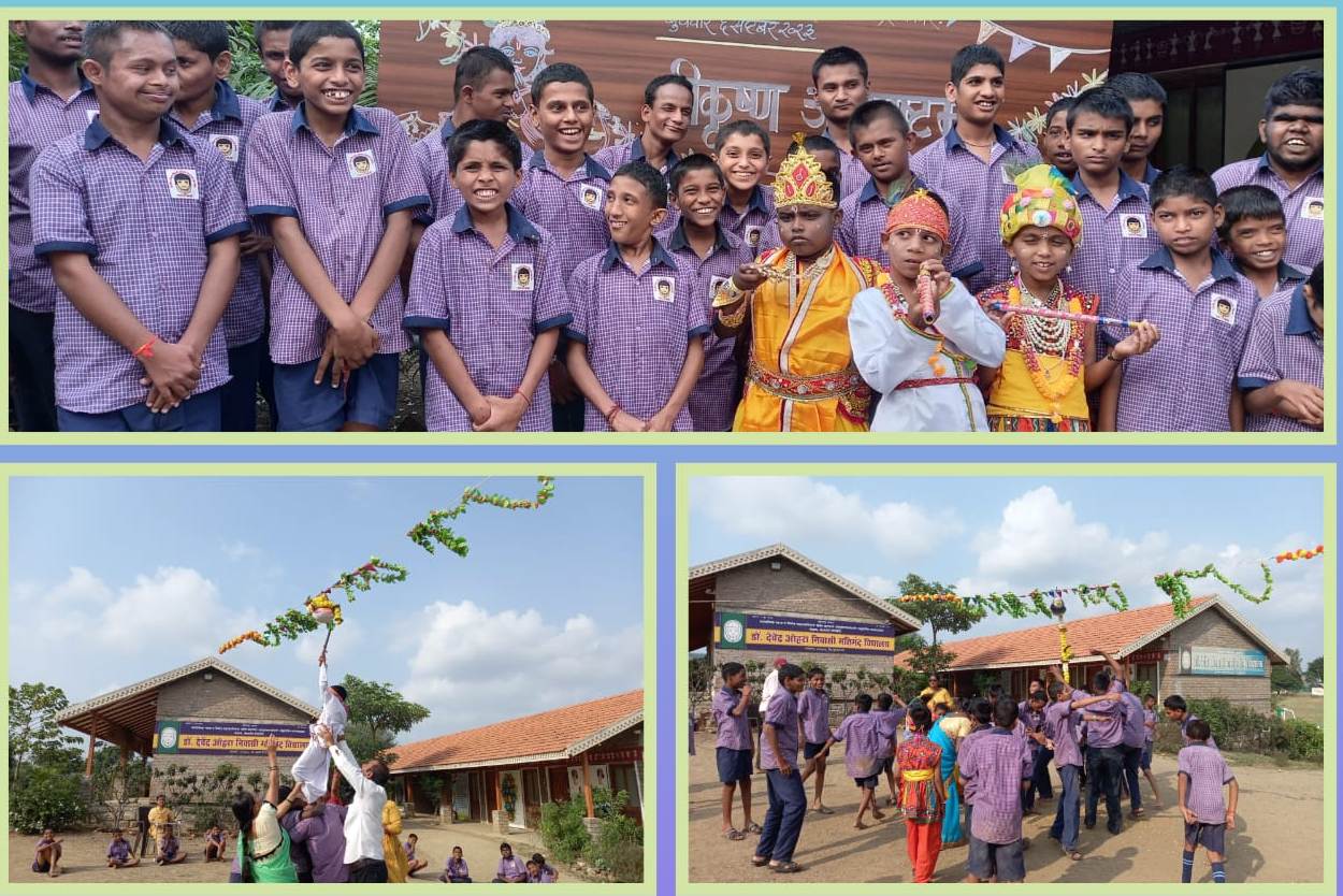 या विद्यालयात सातत्याने विद्यार्थी व्यक्तिमत्व विकासासाठी उपक्रम राबवले जात असून काल दहीहंडीचा उत्सव मोठ्या आनंदाने साजरा झाला यावेळी या मतिमंद विद्यार्थ्यांनी केलेली वेशभूषा व सादर केलेले कलागुण यामुळे उपस्थित सर्व पालक व मान्यवरांनी या विद्यार्थ्यांचे कौतुक केले.