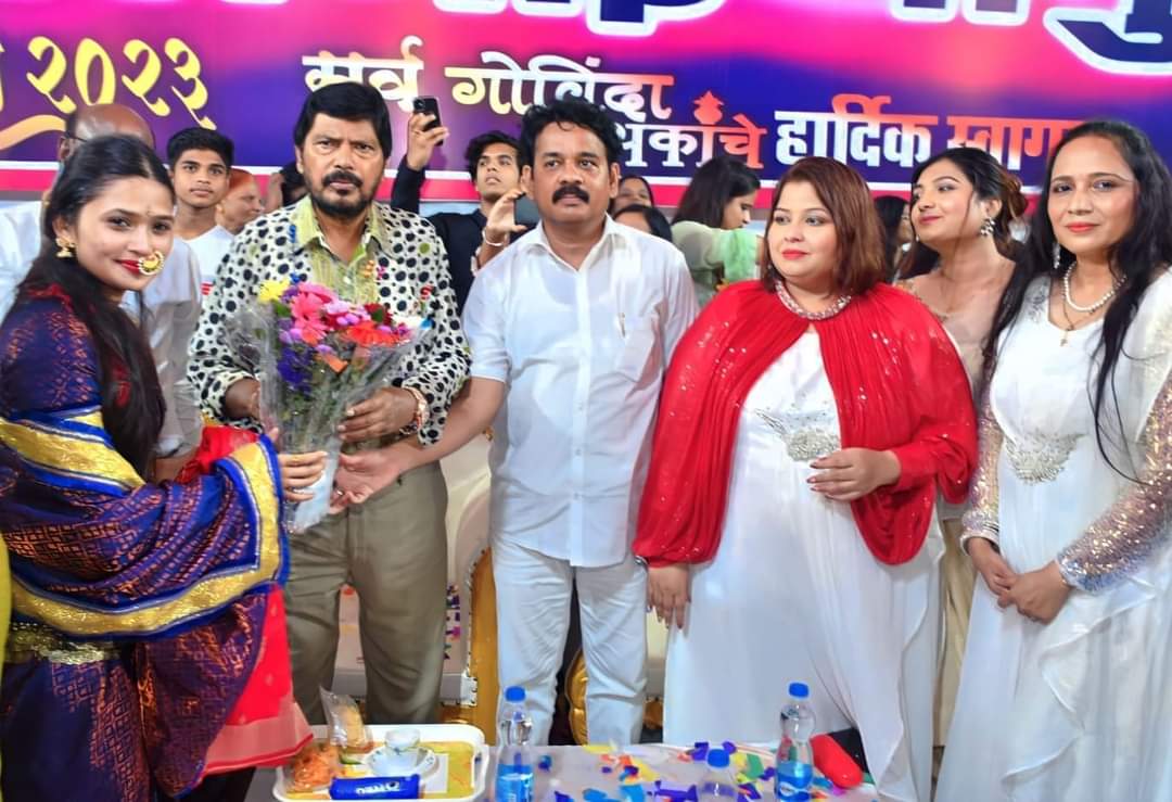 यावेळी ना.रामदास आठवले यांचे सुपुत्र कुमार जित आठवले उपस्थीत होते मुलुंड स्वप्न नगरी येथे रिपाइं चे महाराष्ट्र राज्य उपाध्यक्ष अनिल भाई गांगुर्डे आणि रिपाइं च्या राष्ट्रीय उपाध्यक्ष सौ.शिलाताई अनिल गांगुर्डे यांनी आयोजित केलेल्या दहिहंडी उत्सवात सुप्रसिध्द नृत्यांगणा गौतमी पाटील यांचा नृत्याचा कार्पाम आयोजित केला होता.