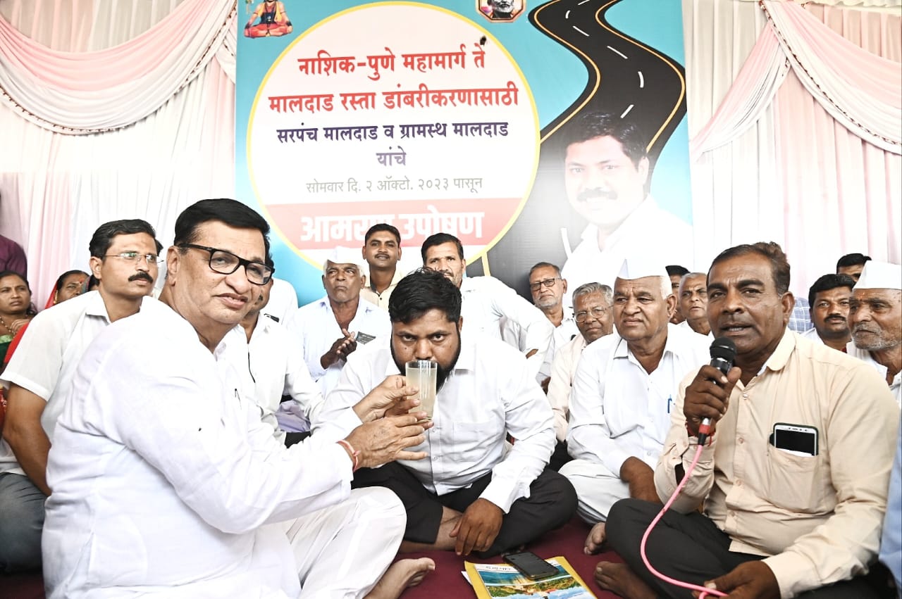 मालदाड फाटा, माझे घर सोसायटी समोर मालदाड चे सरपंच गोरक्षनाथ नवले व ग्रामस्थांनी गांधी जयंतीच्या दिवशी रस्त्याच्या कामासाठी बेमुदत अमरन उपोषण सुरू केले होते.