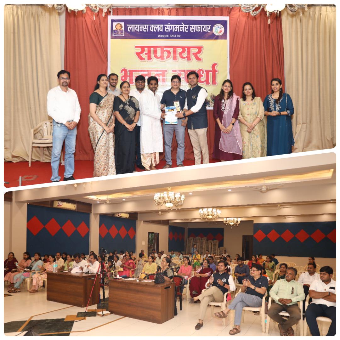लायन्स क्लब संगमनेर सफायरतर्फे लहान मुलांच्या तीन वयोगटांसाठी भक्तीगीत गायन स्पर्धा रविवार दि. १ ऑक्टोबर २०२३ रोजी मालपाणी क्लब येथे पार पडली. वयोगट ७ ते ९, १० ते १२ व १३ ते १५ अशा चार गटांमध्ये ही स्पर्धा भरविण्यात आली होती. प्रत्येक गटातील प्रथम क्रमांकास रू. १०००, द्वितीय क्रमांकास रू. ७००, तृतीय क्रमांकास रू. ५०० तर उत्तेजनार्थ रू. ३०० आणि उत्तेजणार्थ अशी एकूण १०,००० रूपयांची रोख पारितोषिके यावेळी स्पर्धकांना देण्यात आली. ही सर्व पारितोषिके मालपाणी ग्रुप तर्फे प्रायोजित केली गेली.
