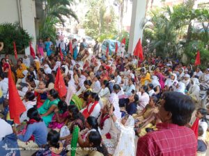 ऑनलाईन कामे देवू नये , दिवाळी बोनस दया , शासनाकडून किमान वेतन दया आदी मागणीसह आशा वर्कर , गट प्रवर्तकांनी गेल्या १० दिवसापासून काम बंद आंदोलन सुरु केले असून अदयाप शासनाचा कुठलाही निर्णय होत नसल्याने संगमनेर – अकोले तालुक्यातील हजारो आशा वर्कर व गटप्रवर्तकांनी आयटक संलग्न महाराष्ट्र राज्य आरोग्य आशा व गट प्रवर्तक संघटनेच्या माध्यमातून संगमनेर प्रांत कार्यालयावर मोर्चा काढत आपल्या मागणीचे निवेदन देण्यात आले