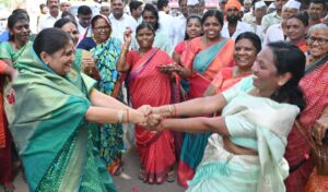 महाविजेती गौरी पगारेच्या विजयी मिरवणुकीत स्नेहलता कोल्हे यांची फुगडी