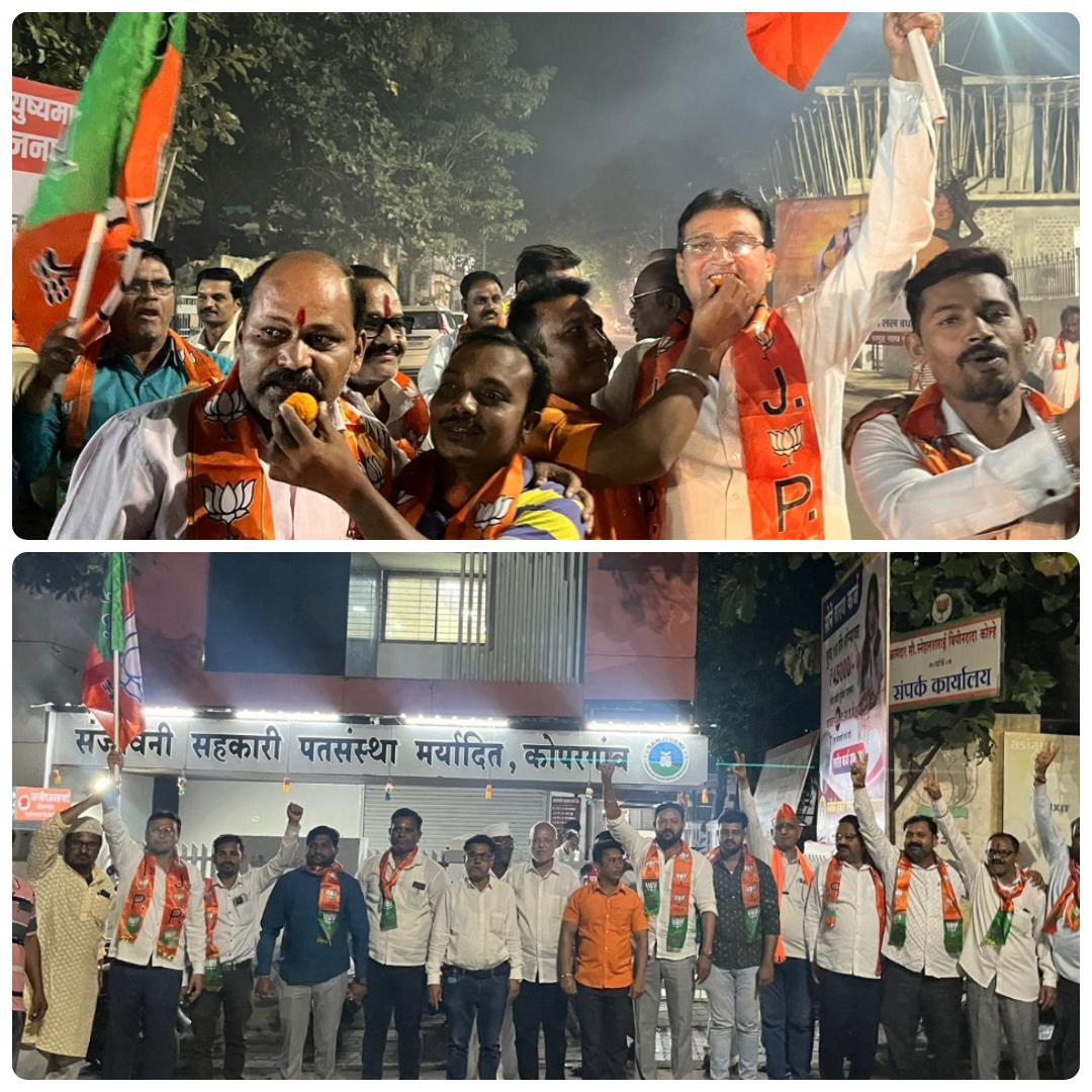 राजस्थान, मध्य प्रदेश, छत्तीसगड व तेलंगणा या चार राज्यांतील विधानसभा निवडणुकांचे निकाल रविवारी जाहीर झाले. राजस्थान, मध्य प्रदेश, छत्तीसगडमध्ये भाजपने मिळवलेल्या अभूतपूर्व विजयाबद्दल सायंकाळी कोपरगाव येथे शहर व तालुका भाजपच्या वतीने माजी आमदार स्नेहलता कोल्हे यांच्या जनसंपर्क कार्यालयाबाहेर फटाके वाजवून व लाडू वाटून आनंदोत्सव साजरा करण्यात आला.