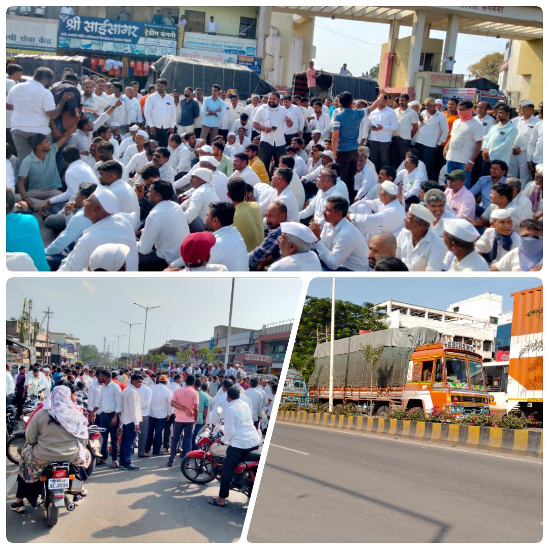 केंद्र सरकारने कांदा निर्यातीवर अकस्मात बंदी घातल्याचे तीव्र पडसाद संगमनेर , अकोले , सिन्नर या तालुक्यामध्ये उमटले. सरकारने शुक्रवारपासून निर्यातीवर पूर्णत: बंदी घातली. काही महिन्यांपूर्वी कांदा निर्यातीवर ४० टक्के निर्यात शुल्क लागू करण्यात आले होते. नंतर ते हटवून कांद्याचे निर्यात मूल्य ८०० डॉलर करून निर्यातीवर अप्रत्यक्ष नियंत्रण राखले गेले. या परिस्थितीत निर्यातीचे प्रमाण कमी झाले असताना आता पूर्णपणे बंदी घातल्याची परिणती दर घसरण्यात झाल्याचा आरोप शेतकऱ्यांनी केला. सकाळी संगमनेर बाजार समितीत लिलावाला सुरुवात झाली. आदल्या दिवशीच्या तुलनेत दोन हजार रुपये कमी दर व्यापाऱ्यांनी जाहीर केल्याने शेतकरी संतप्त झाले. नवीन लाल कांदा व उन्हाळ कांद्याच्या दरात व्यापाऱ्यांनी मोठी तफावत निर्माण केल्याचा आरोप करण्यात आला. लिलाव बंद पाडून आंदोलन करण्यात आले. घोषणाबाजी करण्यात आली. संगमनेर बाजार समितीत गुरुवारी कांद्याला प्रति क्विंटल ४१०० रुपये सरासरी दर मिळाला होता. शुक्रवारी १८०० रुपये दर देत कांद्याला २००० रुपयांपर्यंत घसरल्याने. शेतकऱ्यांनी लिलाव बंद पाडत बाजार समिती समोरचं नगर – नाशिक महामार्गावर आंदोलन करत रस्ता रोको केला .