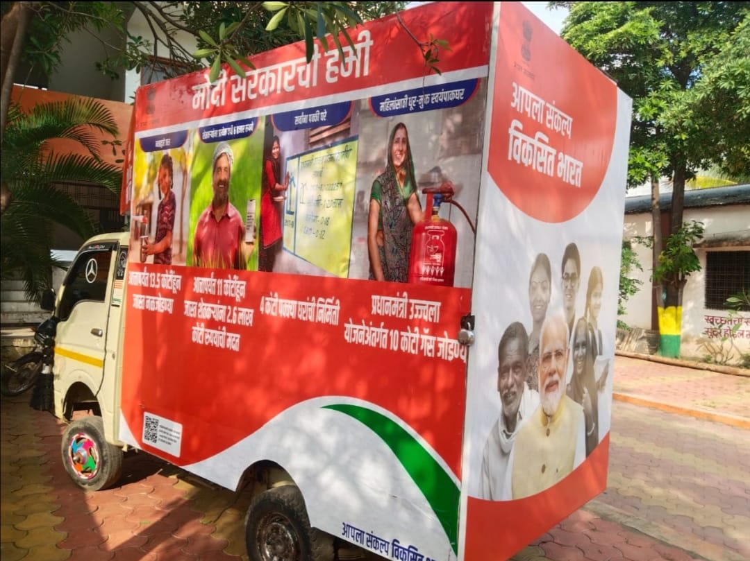 यावेळी विकसित भारत संकल्प यात्रेच्या प्रचार रथास पालकमंत्री श्री विखे पाटील यांच्या हस्ते हिरवी झेंडी दाखवून शुभारंभ करण्यात आला. पालकमंत्री राधाकृष्ण विखे पाटील म्हणाले की, देशाचे प्रधानमंत्री नरेंद्र मोदी यांच्या नेतृत्वाखाली देशाने विकासामध्ये गरुड भरारी घेतली आहे. देशाची अर्थव्यवस्था चौथ्या क्रमांकावर पोहोचून देशाची प्रतिमा जगभरात उंचावत आहे. देशाच्या चौफेर विकासाबरोबरच विविध कल्याणकारी योजनांद्वारे सर्वसामान्यांच्या जीवनात परिवर्तन घडविण्याचे काम करण्यात येत आहे.