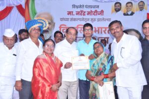 लोकांवर टिका करण्यात वेळ घालविण्यापेक्षा आपल्या कामाच्या माध्यमातून जनतेपर्यंत पोहोचा असे सुचित करुन, मंत्री विखे पाटील म्हणाले की, योजना केंद्र सरकारच्या असतात पण श्रेय दुसरेच घेवून जातात ही परिस्थिती या तालुक्याची आहे. पंतप्रधान नरेंद्र मोदी यांनी सेवा सुशासन आणि गरीब कल्याण या माध्यमातून समाजातील सर्व घटकांना विकासाच्या मुख्य प्रवाहात आणण्याचे काम केले आहे. १०० हून अधिक योजना आज देशभरामध्ये सुरु आहे. या योजनांची माहीती देण्यासाठी विकसित भारत संकल्प यात्रा गावागावात जात असून, २०४७ पर्यंत भारत देश एक विकसित राष्ट्र म्हणून निर्माण करण्याचा संकल्पही या निमित्ताने होत असल्याचे ना.विखे पाटील म्हणाले.