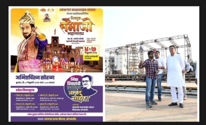 काँग्रेस विधिमंडळ पक्षाचे नेते तथा मा. कृषी व महसूलमंत्री आमदार बाळासाहेब थोरात यांच्या वाढदिवसानिमित्त जाणता राजा मैदानावर 4 फेब्रुवारी ते 7 फेब्रुवारी 2024 सायंकाळी 6 वा. खा.डॉ अमोल कोल्हे यांचे शिवपुत्र संभाजी हे महानाट्य सर्व नागरिकांसाठी मोफत असून या महानाट्यासाठीची जय्यत तयारी सुरू असून संगमनेर मधील सर्व नागरिकांची उत्कंठा शिगेला पोचली आहे.