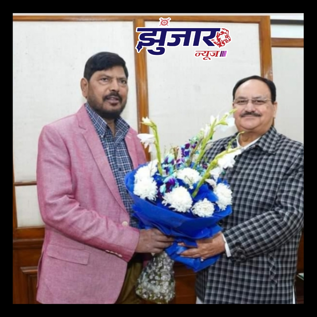 रिपब्लिकन पक्षाचे राष्ट्रीय अध्यक्ष केंद्रीय सामाजिक न्याय राज्यमंत्री ना.रामदास आठवले यांनी आज भाजपचे राष्ट्रीय अध्यक्ष खासदार जे पी नड्डा यांची भेट घेतली. लोकसभा निवडणुकीच्या पार्श्वभूमीवर महाराष्ट्रा च्या राजकीय घडामोडींवर यावेळी उभयनेत्यांमध्ये चर्चा झाली. महाराष्ट्रात रिपब्लिकन पक्षाला लोकसभेच्या किमान दोन जागा देणे आवश्यक आहे.शिर्डी हा राखीव मतदारसंघ रिपब्लिकन पक्षाला मिळाला पाहिजे ही रिपब्लिकन कार्यकर्त्यांची आग्रहाची मागणी असल्याबाबत या भेटीत ना.रामदास आठवले यांनी खा.जे पी नड्डा यांना माहिती दिली.