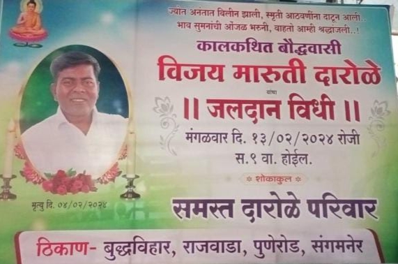 मुलांचे शैक्षणिक, कौटुंबिक हाल होणार नाहीत या साठी प्रयत्न* करणे गरजेचे आहे . एक हात मदतीचा या उक्ती प्रमाणे प्रत्येक व्यक्तीने टोपी टॉवेलचा दुखवटा न करता *जलदान विधीच्या दिवशीच दुखवटा म्हणून आर्थिक मदत करावी . थोडे दिवस दुःख हलके होईपर्यंत आधार होईल . विजयच्या कुटुंबाला मदत केल्याशीवाय श्रद्धांजली पूर्ण होणारच नाही अशी प्रत्येकाची भावना आहे .