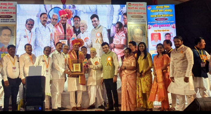 सम्राट चौकातील महेश भवन येथे राज्यस्तरीय सृजन २०२४ बैठक आयोजित करण्यात आली होती.भव्यदिव्य सोहळ्यात आमदार विजयराव देशमुख, उद्योगपती लक्ष्मीकांत सोमाणी, बंगडीवाला उद्योगसमूहाचे जितेंद्र बिहाणी यांचे हस्ते हा पुरस्कार प्रदान करण्यात आला.प्रसंगी व्यासपीठावर प्रदेशाध्यक्ष मधुसूदन गांधी, प्रदेश मंत्री सत्यनारायण सारडा सतिश चरखा जुगलकिशोर लोहिया भिकुलाल मर्दा, जिलाध्यक्ष जवाहर जाजु,मंत्री किरणकुमार राठी, महासभेचे प्रतिनिधी चंद्रकांत तापडिया सह पदाधिकारी मोठ्या संख्येने उपस्थित होते.